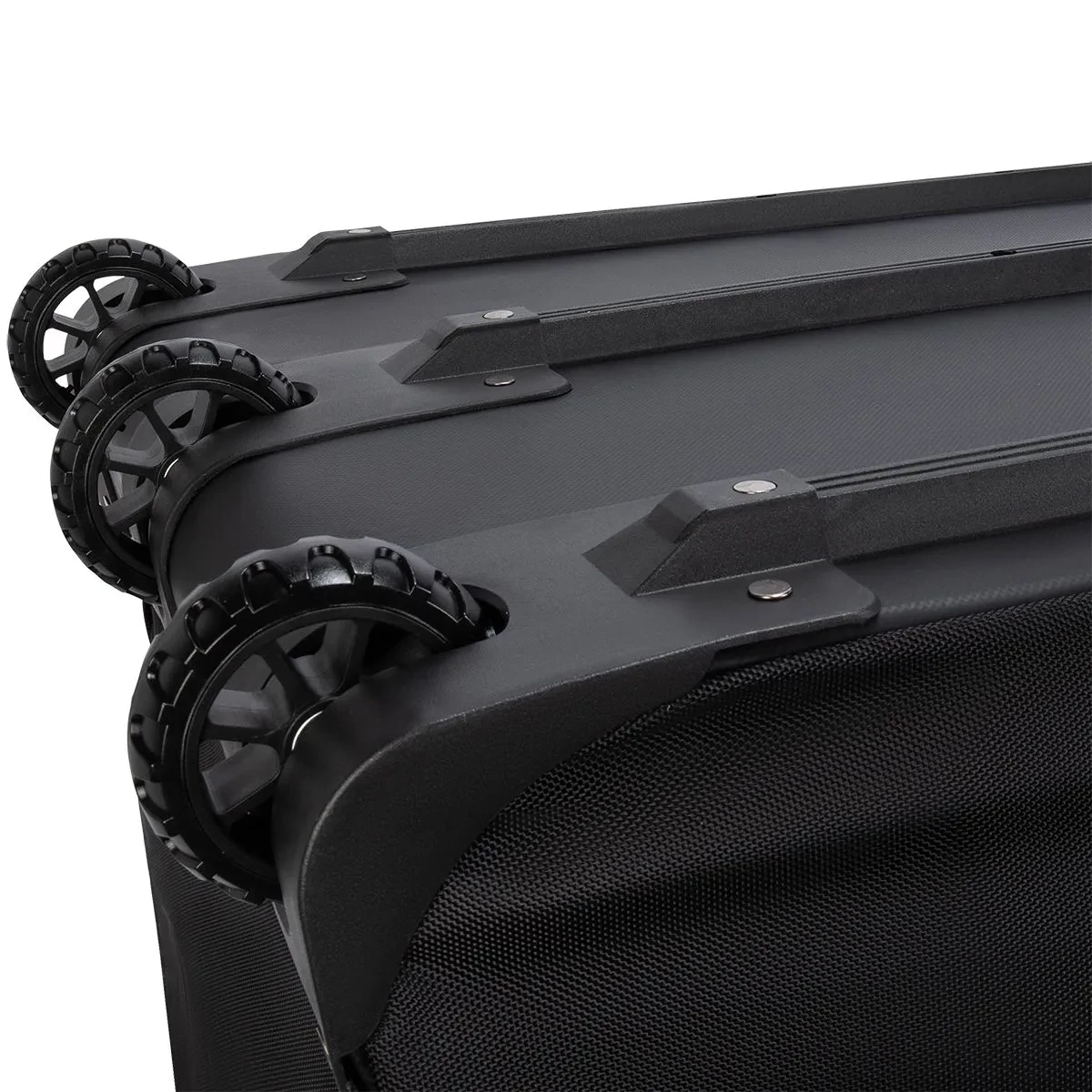 1680D polyester reinforced along the bottom with tarpaulin fabric