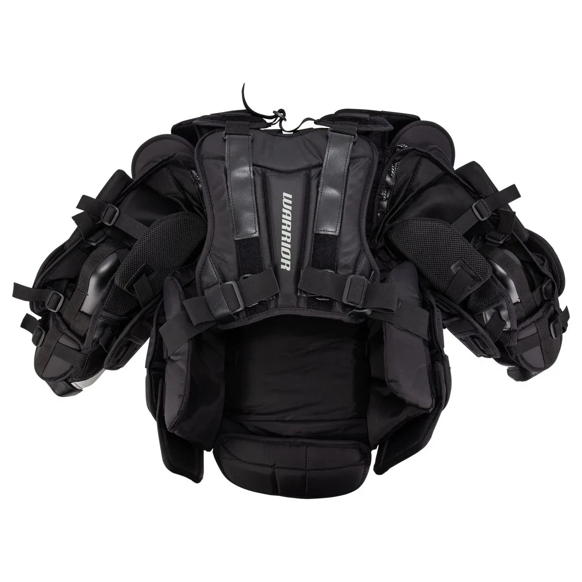 Finally flipping around to the back of the Warrior Ritual X3 Pro+ Chest Protector, you will notice straps the run vertically down the plate that work along with the straps connecting from each side of the ribs area and straps on the shoulders to find the exact preferred fit for each goaltender.